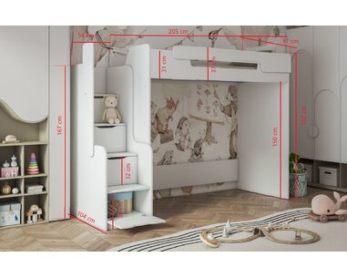 Multifunkčná poschodová posteľ Dori s čalúnenou posteľou, lamino biela, Lagos II