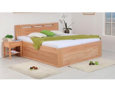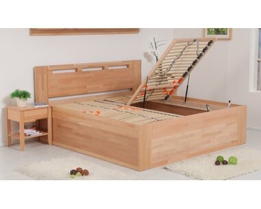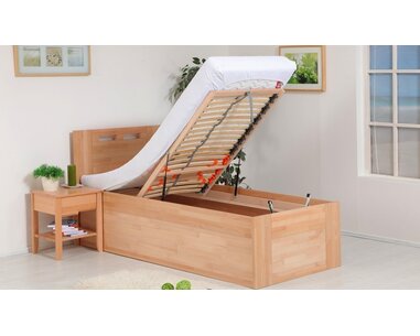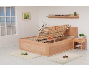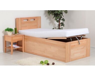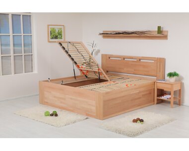 Zvýšená posteľ z masívu s úložným priestorom VALENCIA senior, bočný výklop, je vyrobe ...