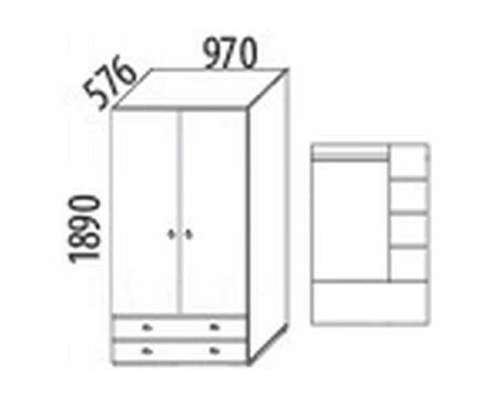 Šatníková skriňa je vybavená dvoma zásuvkami, šatníkovou tyčou a policami.