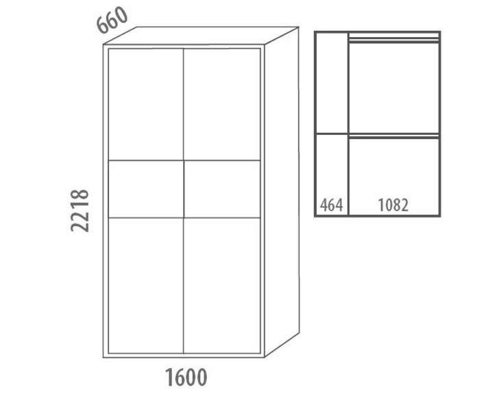 Skriňa s posuvnými dverami D651/L predstavuje variabilnú skriňu, vnútorné usporiadanie si môžete zostaviť podľa svojich potrieb.