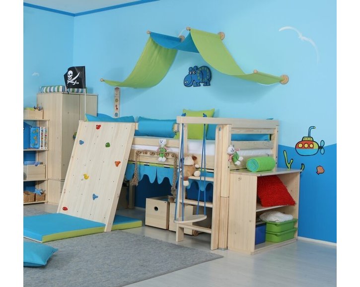 Detské postele Domino je možné vybaviť aj hojdačkou alebo lezeckou stenou - tým vytvoríte svojmu dieťaťu ideálny priestor na hranie a zároveň aj na odpočinok.