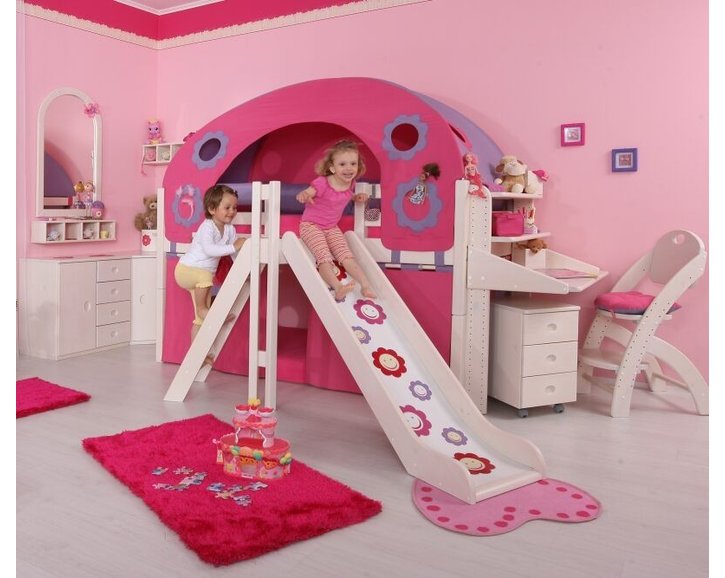 K posteli odporúčame dokúpiť krásny stan, tunel alebo domček v krásnej ružovo-fialovej farbe. K väčšiemu pohodliu môžete dokúpiť chrániče alebo vankúšiky v rovnakom farebnom prevedení. Dokúpením všetkých možných textílií vytvoríte svojmu dieťaťu priestor na hranie aj spánok. Detská posteľ s touto farebnou kombináciou je vhodná predovšetkým do dievčenských izieb.
