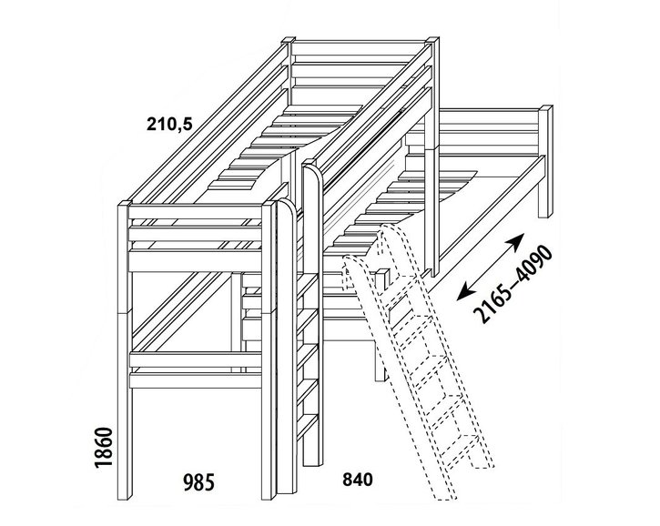 K výstupu na posteľ slúži pohodlný drevený rebrík, ktorý môže byť ľubovoľne umiestnený na pravej alebo ľavej strane postele. Navyše si môžete vybrať, či má byť rovný alebo šikmý. Bezpečnosť výstupu je u zvýšených postelí a poschodových postelí dosiahnutá špeciálnou protišmykovou úpravou.