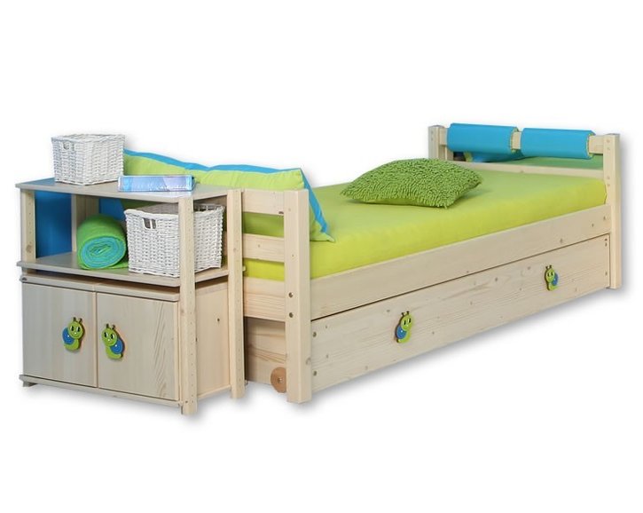 Posteľ môžete ďalej vybaviť textilnými chráničmi a vankúšikmi v rovnakom dizajne. Ak potrebujete miesto v detskej izbe na hračky či iné veci, odporúčame dokúpiť úložné priestory pod posteľ, ktoré môžu byť polovičné, trištvrťové alebo po celej dĺžke postele.
