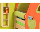 Drevené zábrany je vhodné doplniť o textilné chrániče. Pod spodné lôžko je možné umiestniť úložné priestory - šuplíky polovičné, trištvrtečné alebo po celej dĺžke, alebo prístelku. Pre malé deti môžete k spodnej posteli na prednú stranu dokúpiť detskú zábranu.
