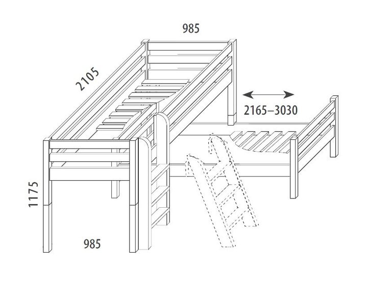 K výstupu na vyvýšenú posteľ slúži pohodlný drevený rebrík, ktorý môže byť ľubovoľne umiestnený na pravej alebo ľavej strane postele. Navyše si môžete vybrať, či má byť rovný alebo šikmý. Bezpečnosť výstupu je pri zvýšených posteliach dosiahnutá špeciálnou protišmykovou úpravou. Výhodou tejto postele je, že spodné lôžko možno ľubovoľne zasúvať alebo vysúvať pod horné lôžko.