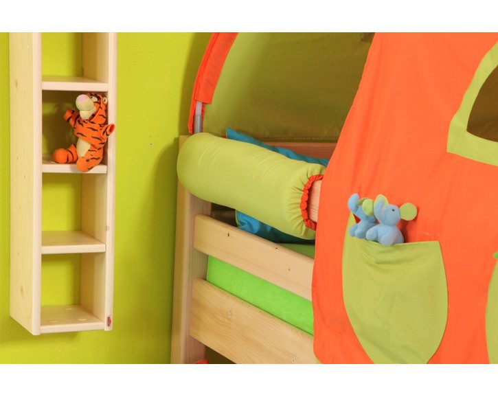 Zvýšená posteľ pre 2 deti - elko DOMINO D937 je vyrobená z masívneho smreku o hrúbke 2,5 cm výberovej kvality s povrchovou úpravou ekologického laku.