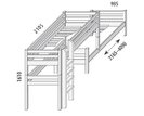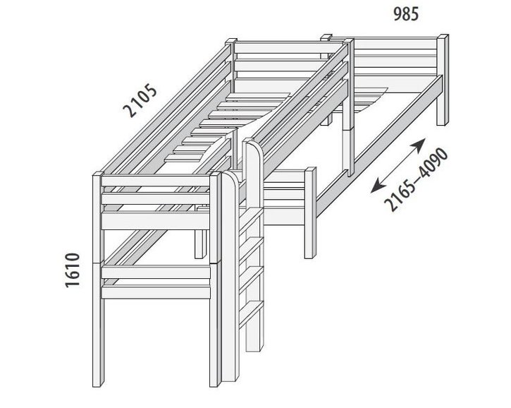 K výstupu na túto poschodovú posteľ pre 2 deti slúži pohodlný drevený rebrík, ktorý môže byť ľubovoľne umiestnený na pravej alebo ľavej strane postele. Navyše si môžete vybrať, či má byť rovný, šikmý alebo s otvormi. Bezpečnosť výstupu je pri zvýšených posteliach a poschodových posteliach zabezpečená špeciálnou protišmykovou úpravou.