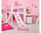 Detská posteľ sa vyznačuje vysokou kvalitou spracovania a všetky jej hrany a rohy sú zaoblené. Bezpečnosť výstupu je pri zvýšených posteliach dosiahnutá špeciálnou protišmykovou úpravou. Táto krásna posteľ vynikne v každej detskej izbe a ponúka miesto pre fantáziu pri hraní.