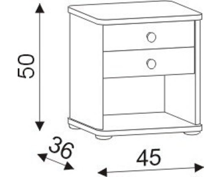 Nočný stolík je vybavený dvoma praktickými zásuvkami, ktoré sú opatrené drevenou úchytkou. Pod zásuvkou sa nachádza praktický úložný priestor na vaše veci, ktoré potrebujete mať v spálni po ruke.