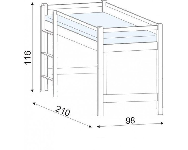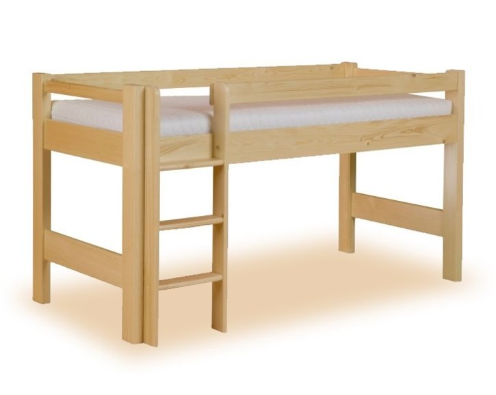 Posteľ je opatrená zábranou proti pádu zaisťujúcou bezpečnosť vašich detí. K výstupu na hornú posteľ slúži drevený rebrík. Vďaka nášľapom o dĺžke 9 cm je tak výstup veľmi pohodlný. Rebrík môže byť umiestnený ako na ľavej, tak na pravej strane postele, zákazník určí sám pri montáži. Priestor od zeme po vrchnú bočnicu je 75 cm. Detská zvýšená posteľ sa skladá z jednej lôžkovej časti na poschodí a spodného priestoru, ktorý možno využiť na hranie vašich ratolestí.