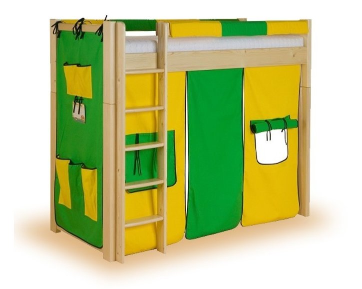Posteľ je opatrená zábranou proti pádu zaisťujúcou bezpečnosť vašich detí. K výstupu na posteľ slúži drevený rebrík. Vďaka nášľapom o dĺžke 9 cm je tak výstup veľmi pohodlný. Rebrík môže byť umiestnený ako na ľavej, tak na pravej strane postele, zákazník si stranu zvolí sám pri montáži. Priestor od zeme po vrchnú bočnicu je 136 cm. Spodný priestor pod posteľou možno využiť na hranie alebo tu môžete umiestniť písací stôl či iný druh nábytku, ktorý je možné dokúpiť - viď ponuka príslušenstva.