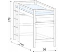 Posteľ je opatrená zábranou proti pádu zaisťujúcou bezpečnosť vašich detí. K výstupu na posteľ slúži drevený rebrík. Vďaka nášľapom o dĺžke 9 cm je tak výstup veľmi pohodlný. Rebrík môže byť umiestnený ako na ľavej, tak na pravej strane postele, zákazník si stranu zvolí sám pri montáži. Priestor od zeme po vrchnú bočnicu je 136 cm.