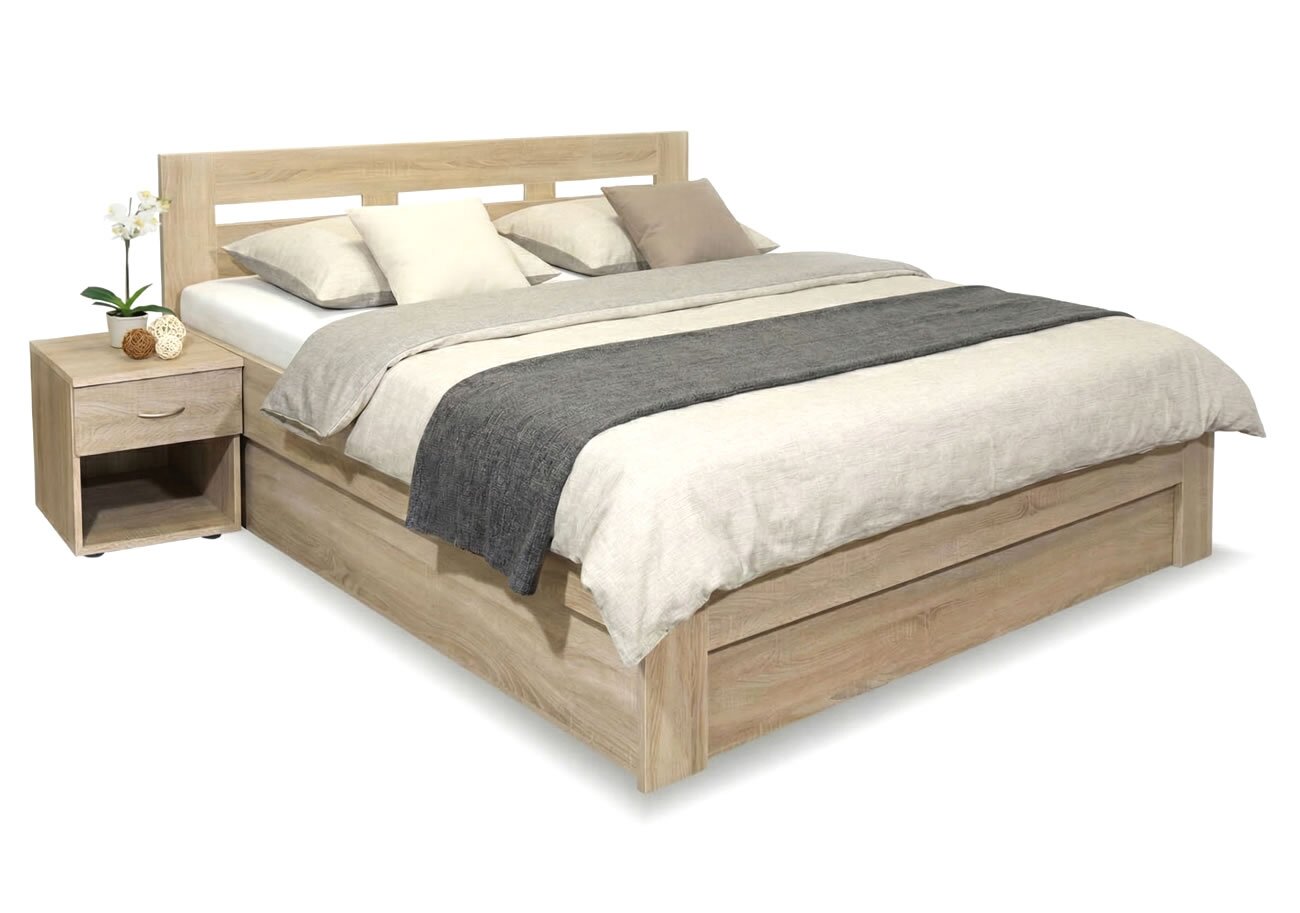 Oceňujem možnosť výroby postele v rôznych farebných dekoroch, takže ľahko zapadne do akéhokoľvek interiéru. Hrúbka materiálu 2,5 cm a použité 2 mm ABS hrany dávajú tejto posteli predpoklady na výbornú pevnosť a dlhú životnosť.
