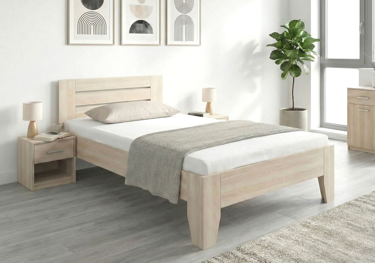Sila materiálu 2,5 cm a použité ABS 2mm hrany dávajú posteli CANARIA predpoklady pre skvelú pevnosť a dlhú životnosť. Vyzdvihol by som tiež 50cm vysoký rám postele, vďaka ktorému je vstávanie a ukladanie sa na posteľ veľmi pohodlné.