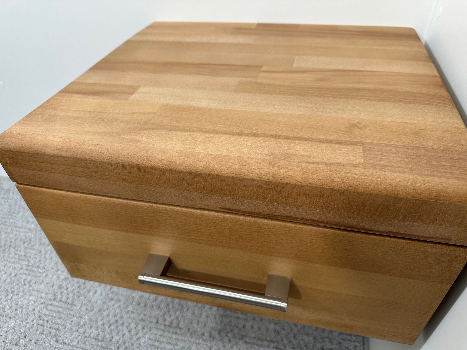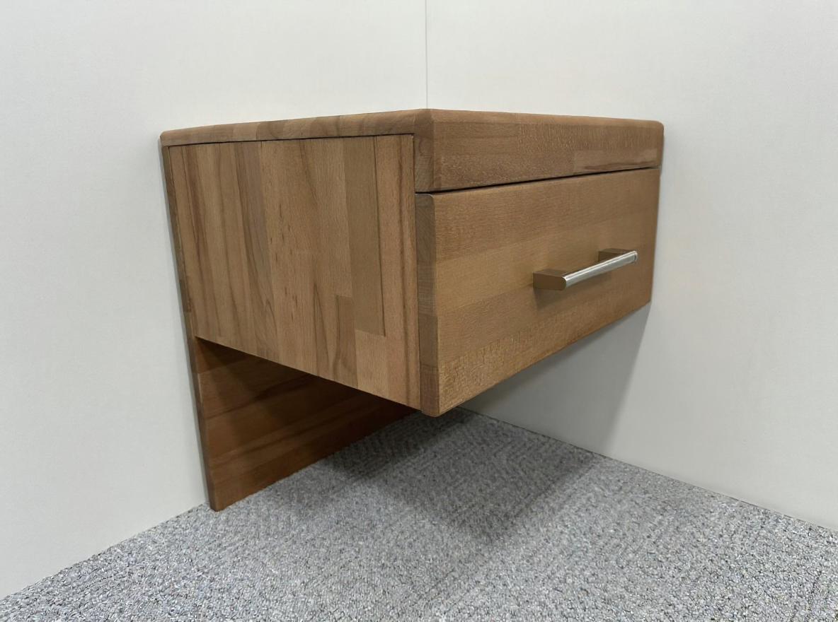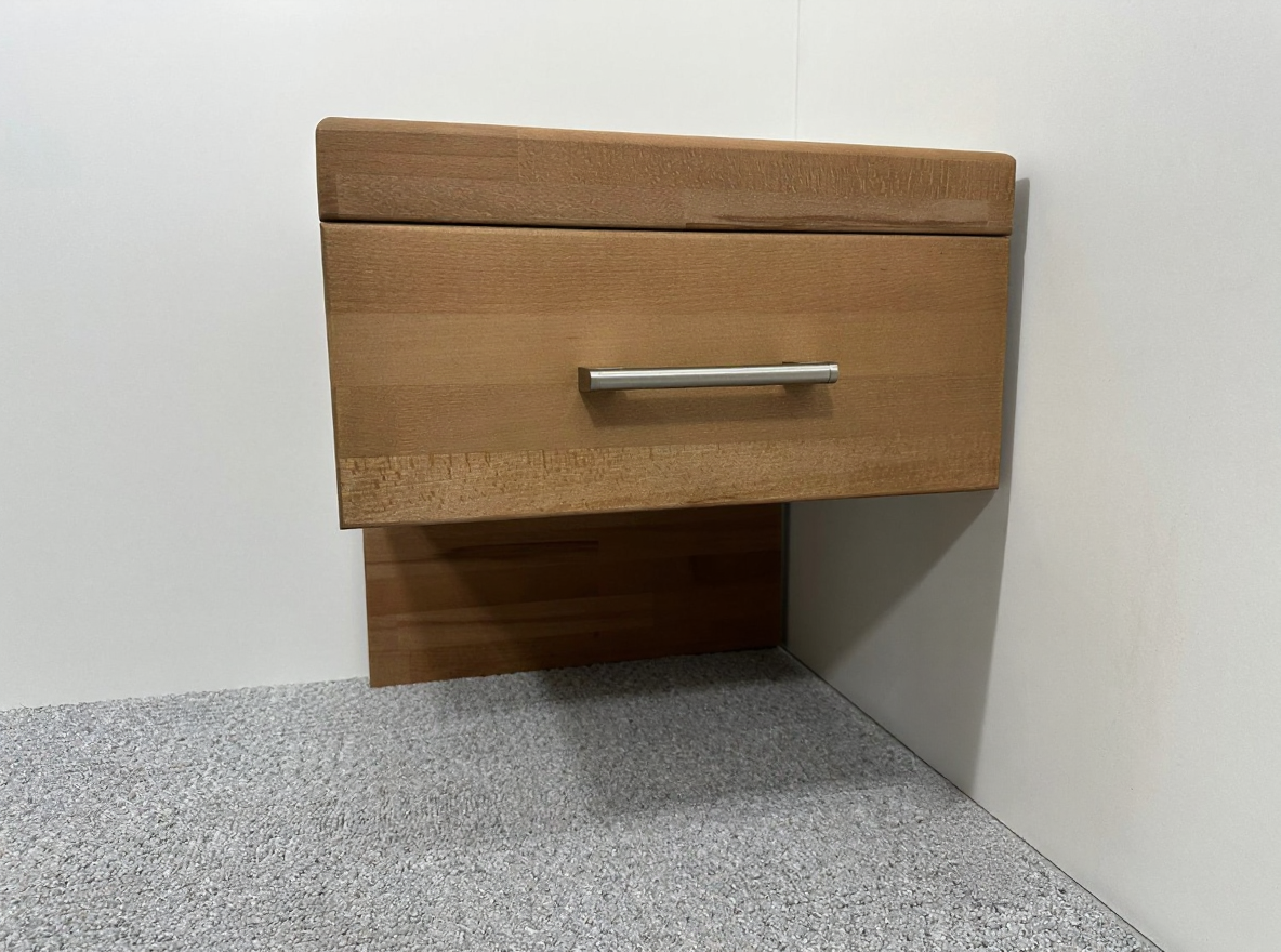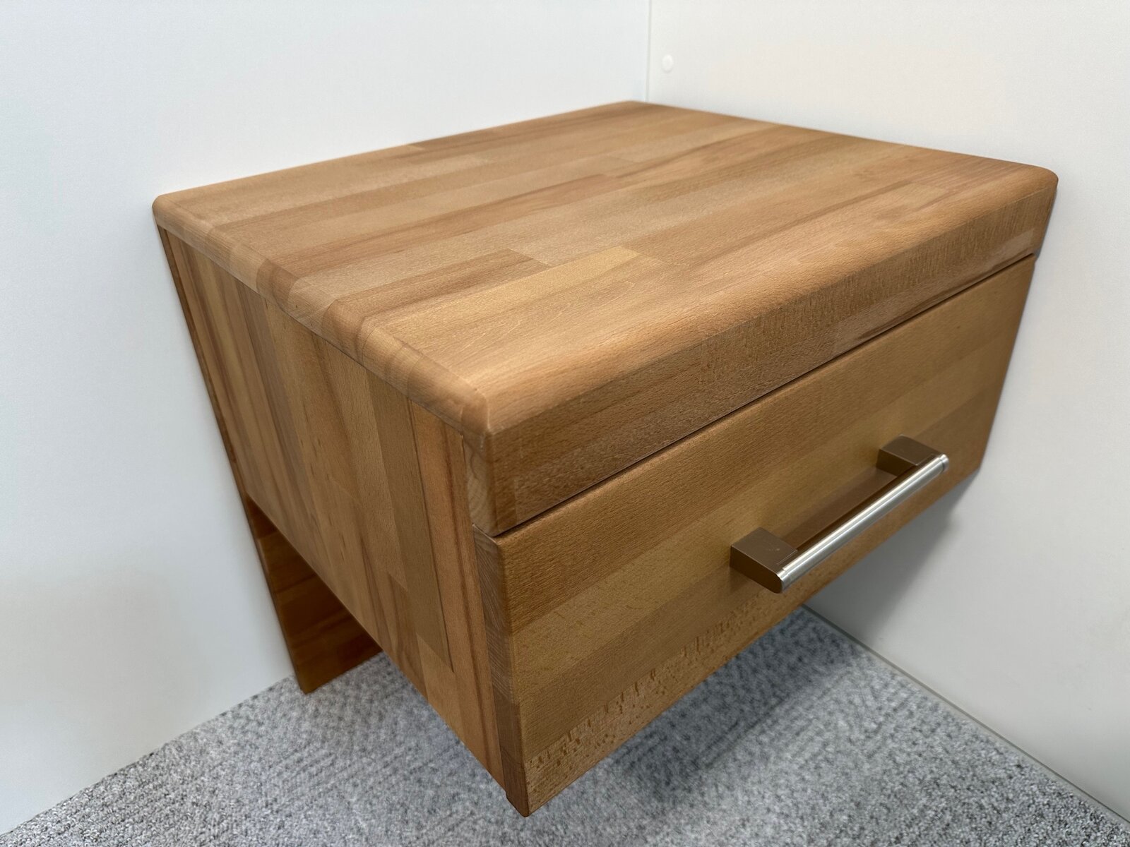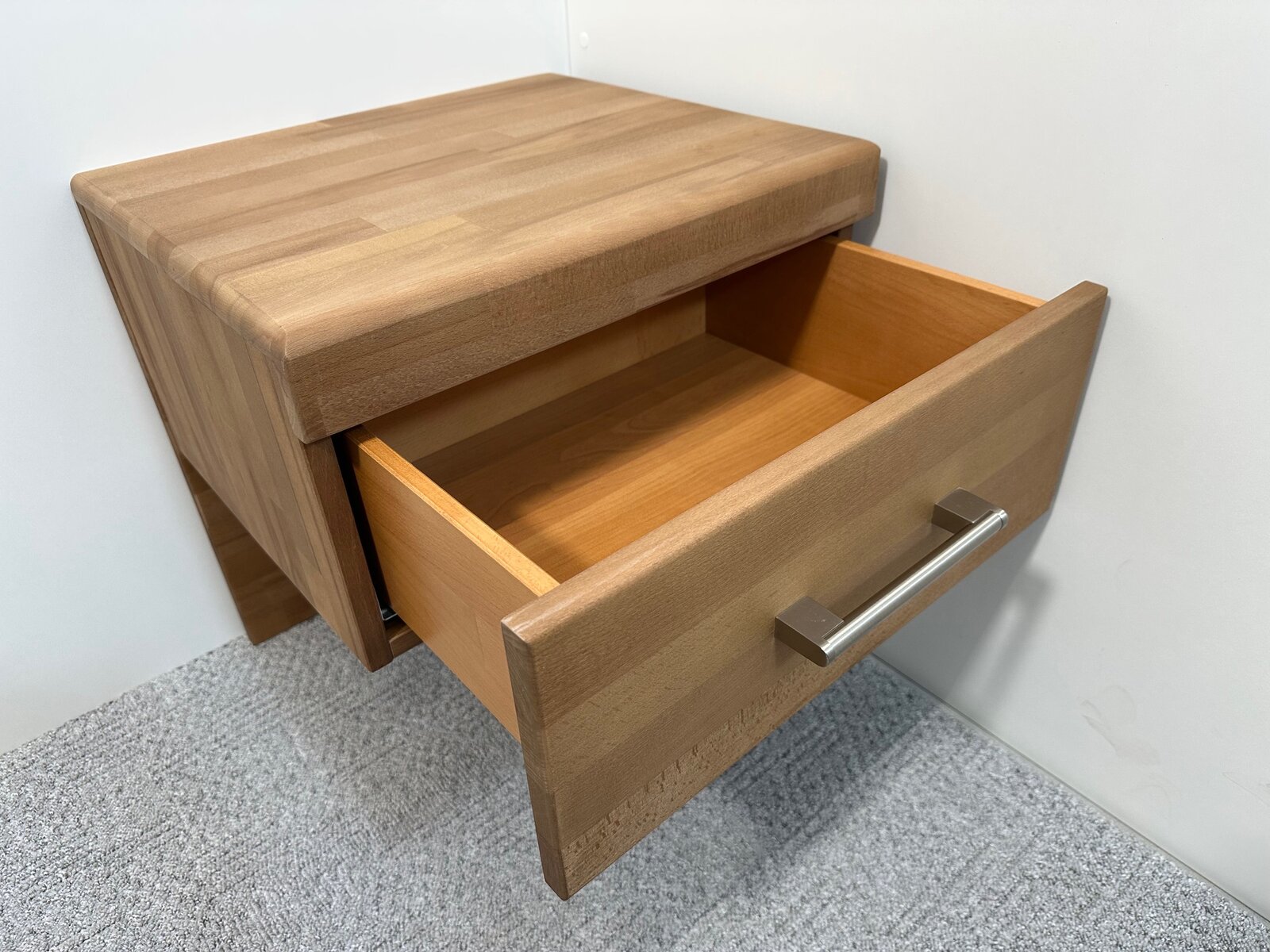 Nočný stolík Concepta je vyrobený z masívneho jadrového buka v parketovom prevedení cink. Je priamo určený k posteliam Concepta z rovnakej výrobnej rady.