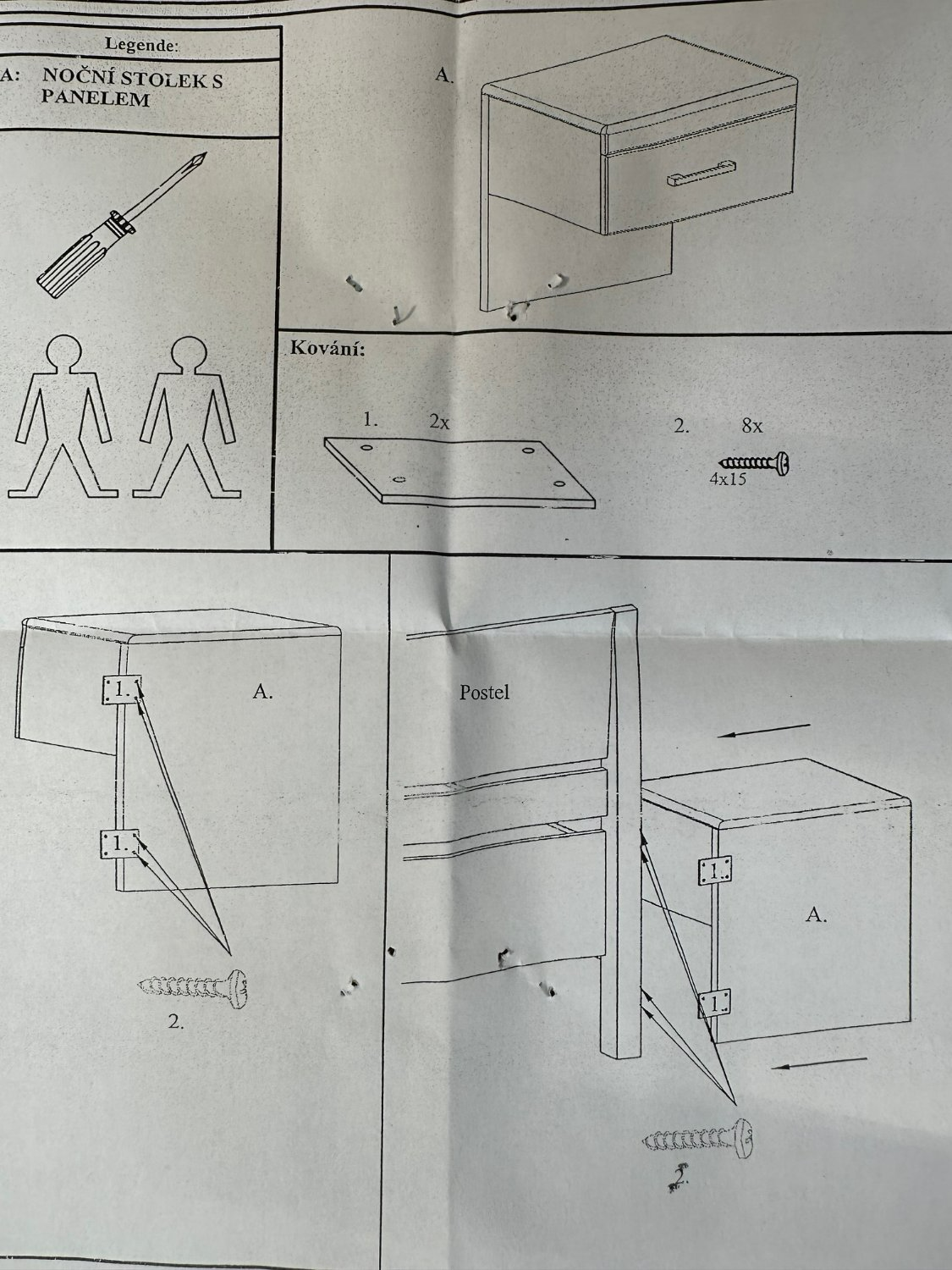 K posteli sa tento nočný stolík pripevňuje zo zadnej časti pomocou vrutov a špeciálnych kovových doštičiek.