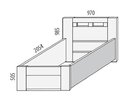 Celkový vzhľad tejto postele jednolôžka sa vyznačuje jednoduchým a moderným dizajnom. Úložný priestor je rovnako ako rám postele celodrevený. Čelo pri hlave tvorí tri rozdelené úzke priehľady, vďaka ktorým vyzerá posteľ veľmi zaujímavo. Všetky hrany sú zabrúsené pod uhlom 45°, nikde nevystupuje žiadna ostrá časť. Povrch dreva je kvalitne nalakovaný vodouriediteľným atestovaným lakom, takže je príjemne hladký.