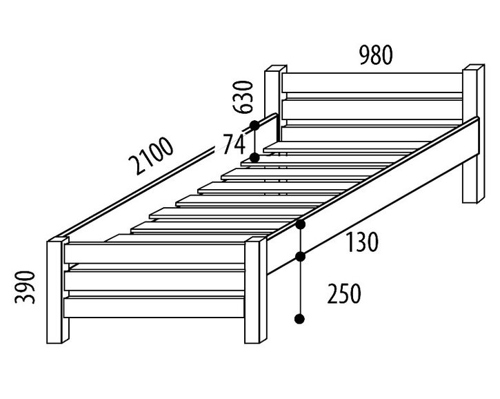 Posteľ je vyrobená z masívu smreku s povrchovou úpravou prírodného laku. Veľkou výhodou tejto postele je zvýšená ležiaca plocha, ktorá zaisťuje ľahké vstávanie z postele.