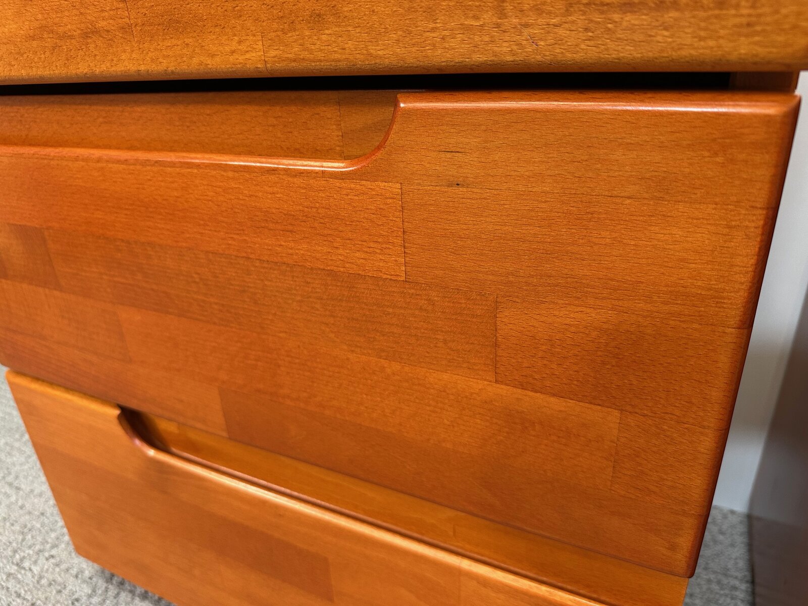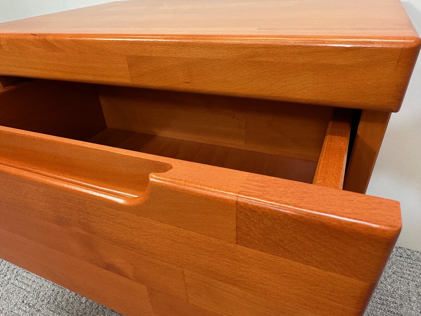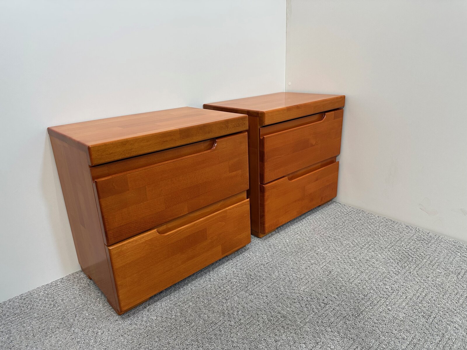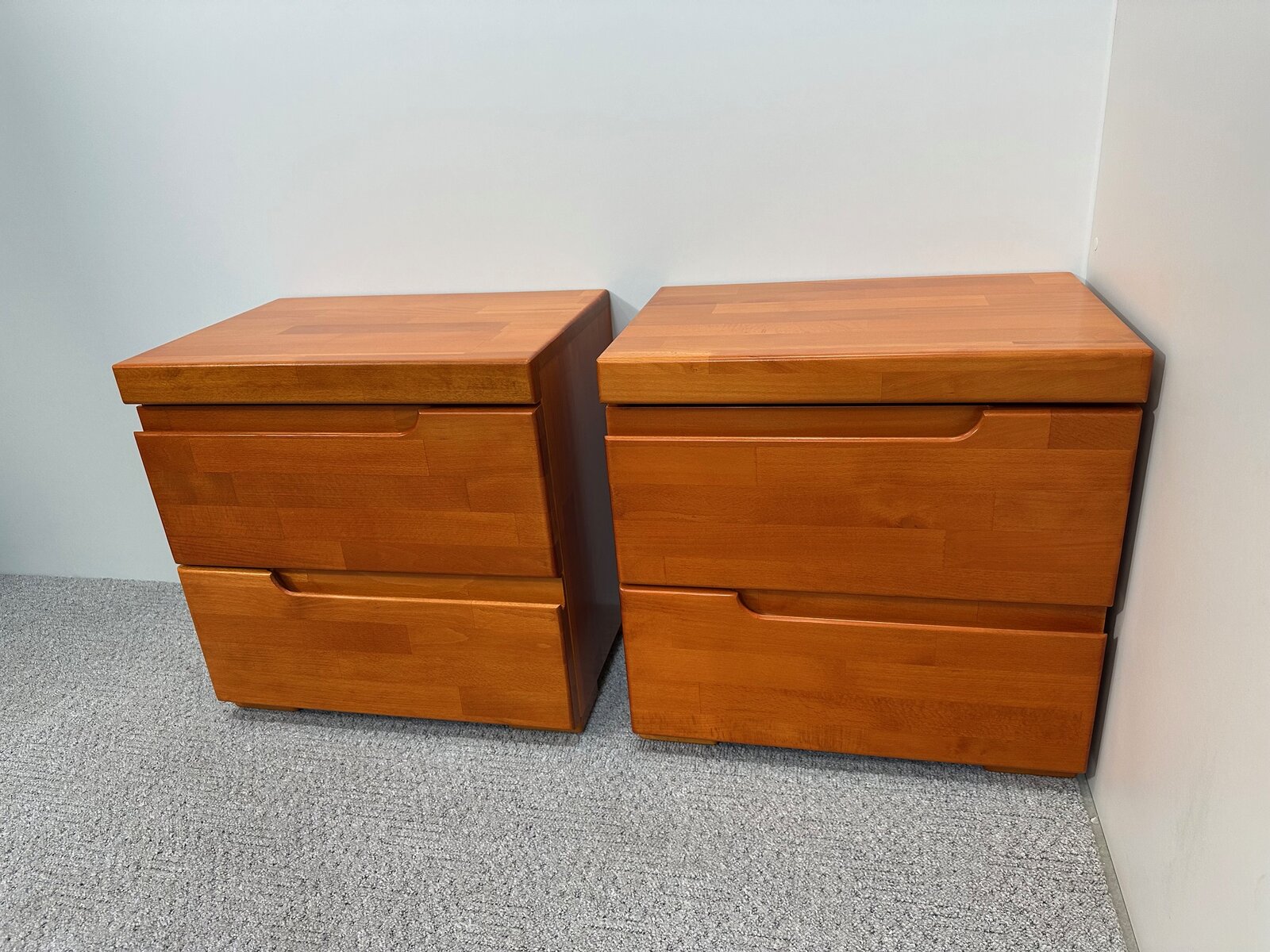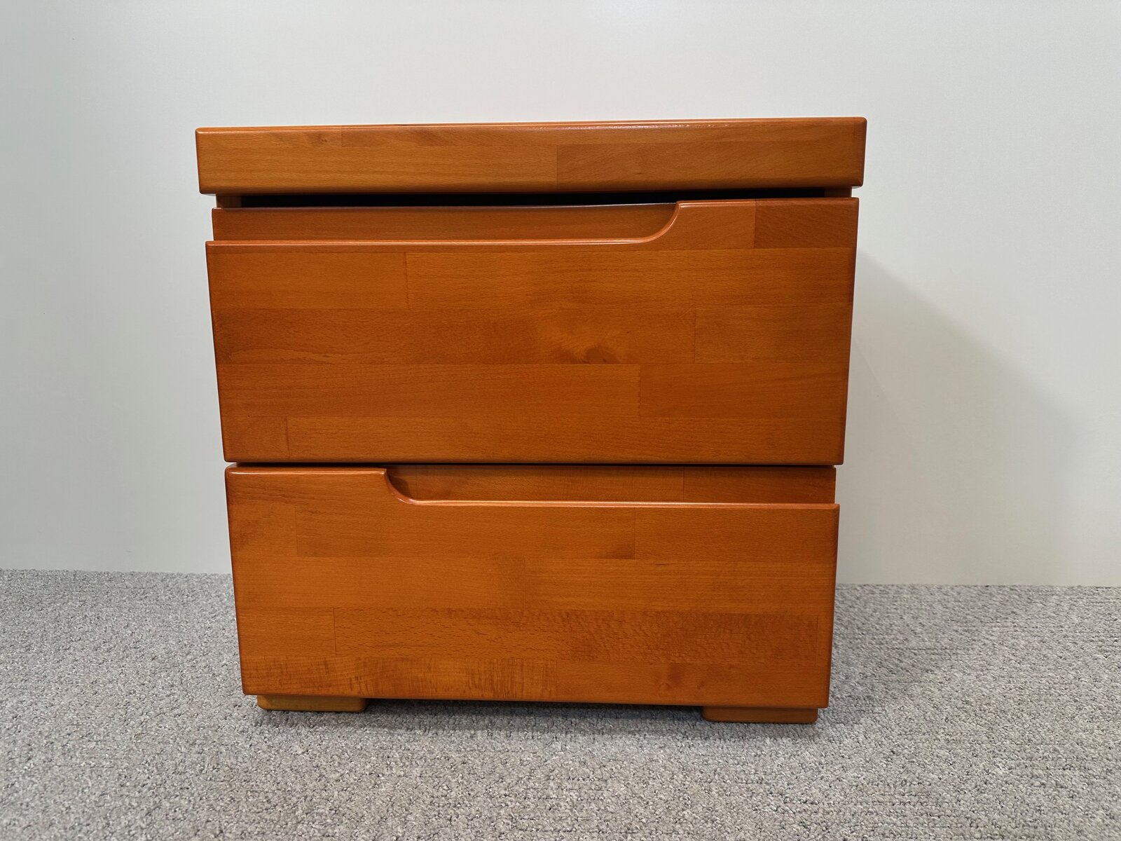 Nočný stolík z masívu, 2-zásuvkový F133 je vyrobený z masívneho buka s povrchovou úpravou lak – jelša.