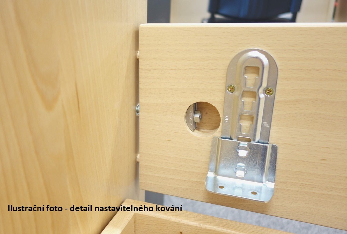 Výškové nastavení je řešeno kovovými patkami, které jsou umístěné na bočnicích. Tyto patky lze lehce vyháknout a opět zaháknout do jedné ze 4 poloh - díky tomu si můžete nastavit výšku lehací plochy dle vašich potřeb.