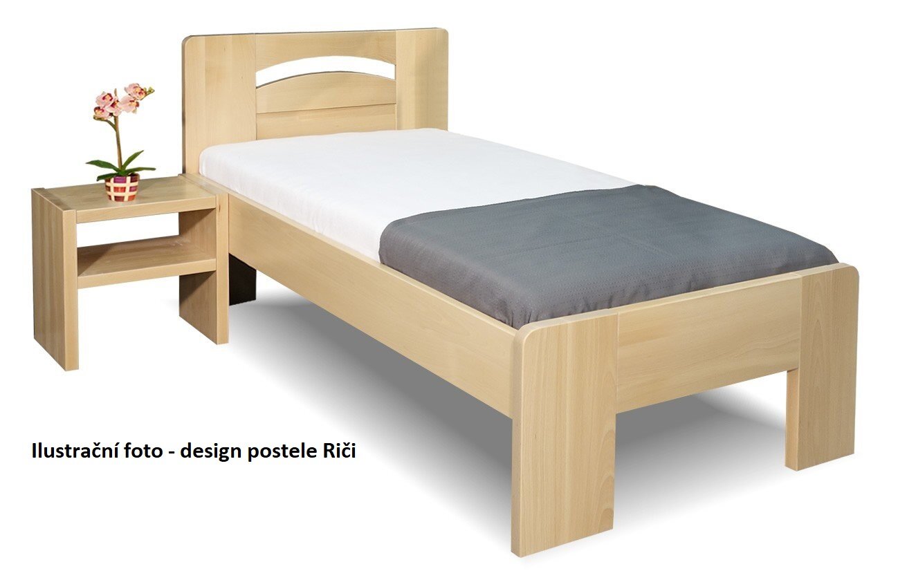 Jednoduchý design je významným prvkem postele Riči. Čelo u hlavy je plné s obloukovým průřezem. Pevné provedení nohou zajišťuje posteli Riči dostatečnou stabilitu. Všechny hrany postele jsou dokonale opracovány tak, aby byl povrch hladký a příjemný na dotek.