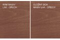 Rám manželskej postele Senátor je vyrobený z 3 cm silného kvalitného bukového dreva v priebežnom prevedení (nie z lepených parkiet). Úložný priestor - box pod posteľ je potom tiež vyrobený z 1,8 cm silného masívu alebo v ekonomickom prevedení z lamina. Keďže je úložný priestor - box nezávislý na ráme postele, nemá prevedenie z lamina žiadny vplyv na nosnosť rámu postele. Odtieň použitého lamina je podobný masívnemu drevu u rámu postele.
