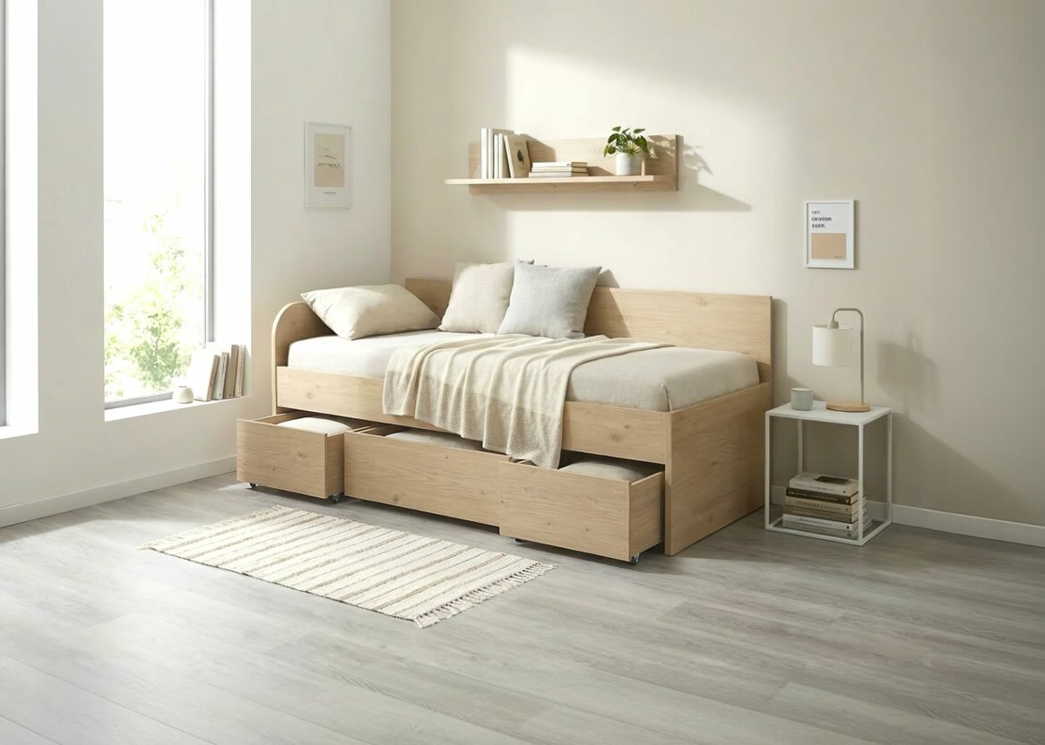Úložný priestor môžete využiť na uloženie oblečenia, športových potrieb či iných vecí. Zásuvky pod posteľou sú vybavené kolieskami, ktoré zabezpečia jednoduchú manipuláciu.