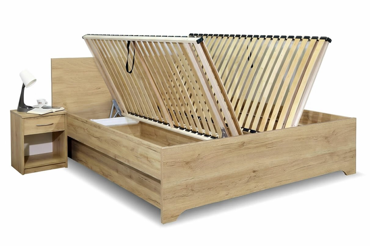 Posteľ dvojlôžko s úložným priestorom HUGO, bočný výklop