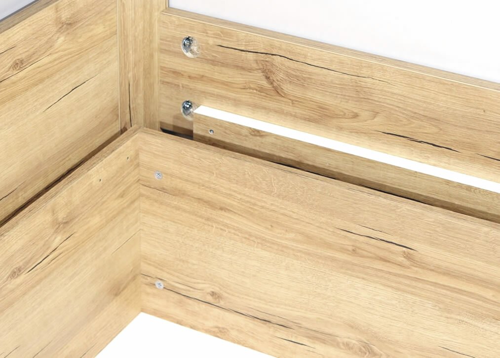 Všetky hrany sú opatrené odolnou ABS hranou o hrúbke 0,5 a 2 mm, ktorá chráni posteľ proti mechanickému poškodeniu.
