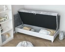 Cena vrátane čalúnenej postele, vrchnej postele a roštovej dosky. Nosnosť 90 kg, lamino o hrúbke 18 a 22 mm. Ľavé a pravé prevedenie.